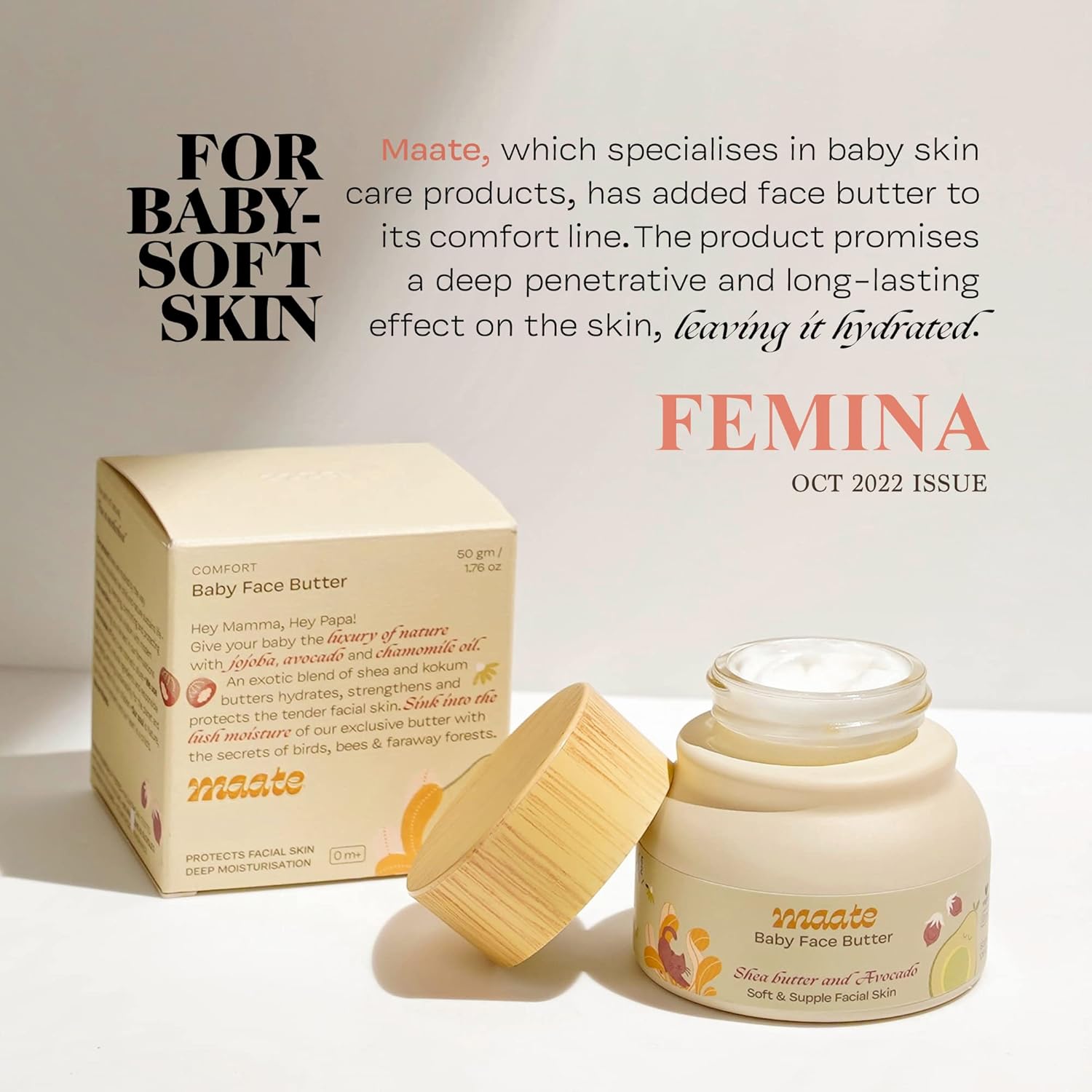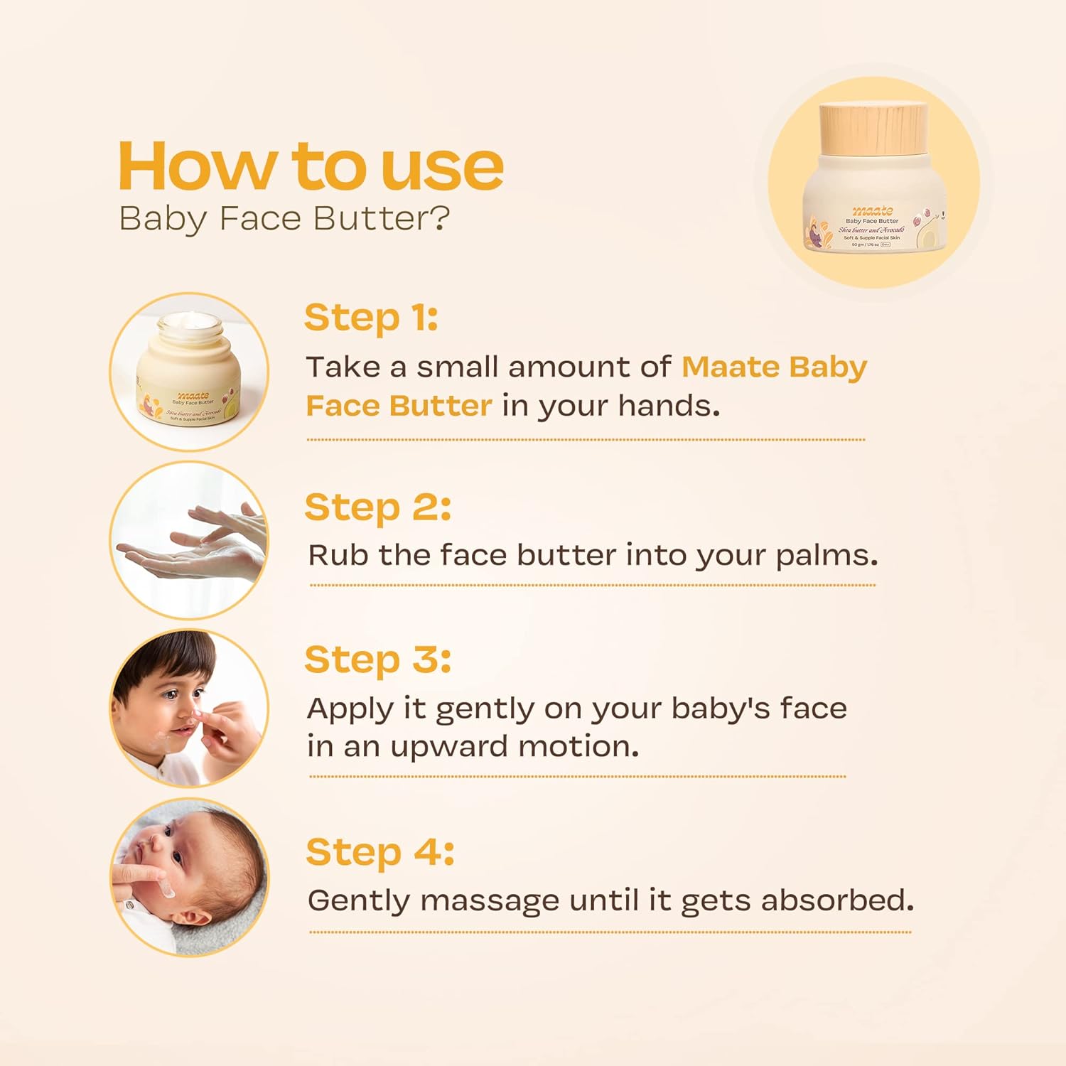 Give your baby’s delicate face the loving care it deserves with Maate Baby Face Butter, a luxurious, Ayurveda-inspired formula crafted from the finest natural ingredients. Designed to nourish, hydrate, and protect the most sensitive skin, this dermatologist and pediatrician-tested butter brings nature’s best straight to your nursery.