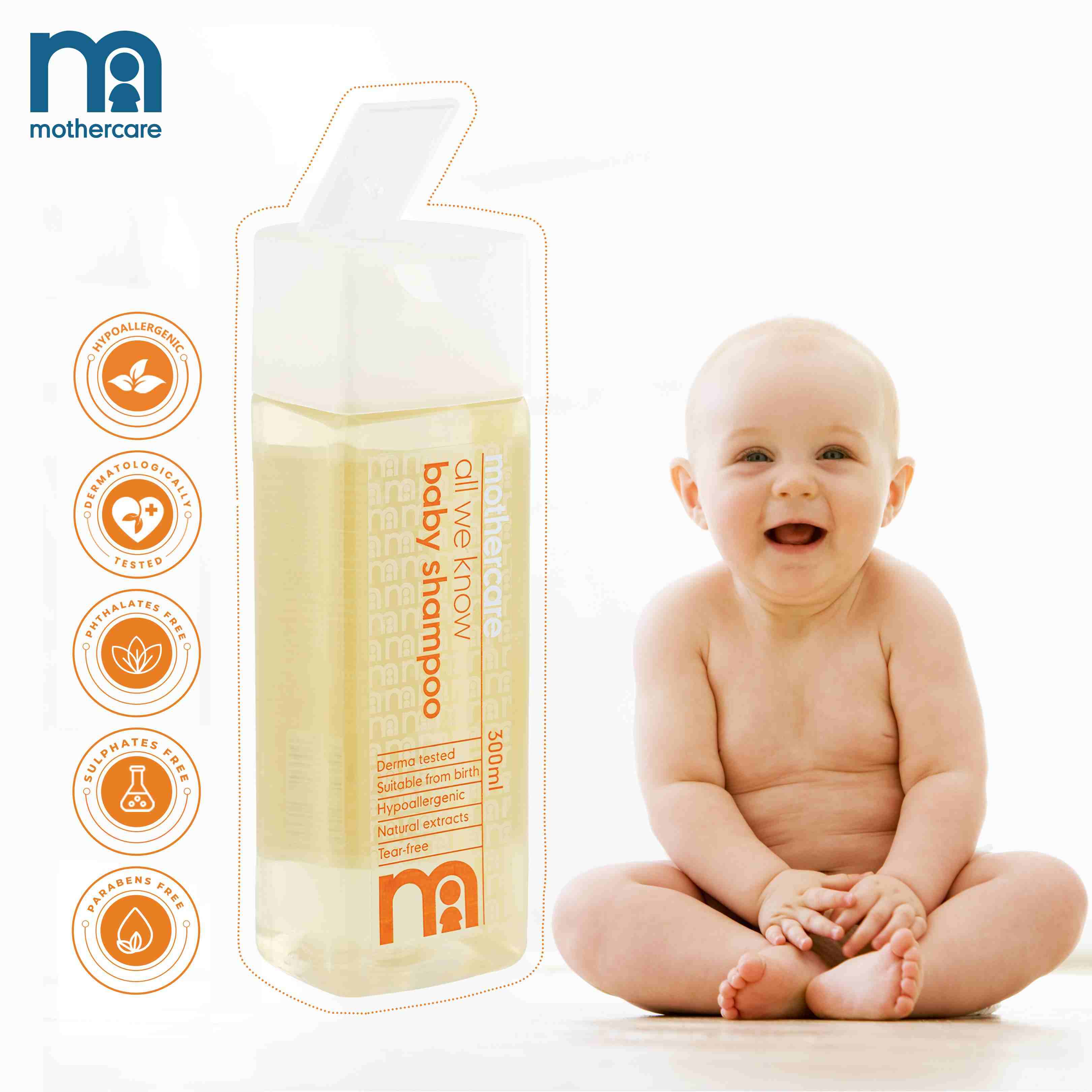Give your baby the gentlest care with Mothercare All We Know Baby Shampoo, designed to cleanse delicate hair and scalp while ensuring a tear-free experience. Suitable from birth, this dermatologically tested formula is enriched with natural extracts to maintain softness and hydration.