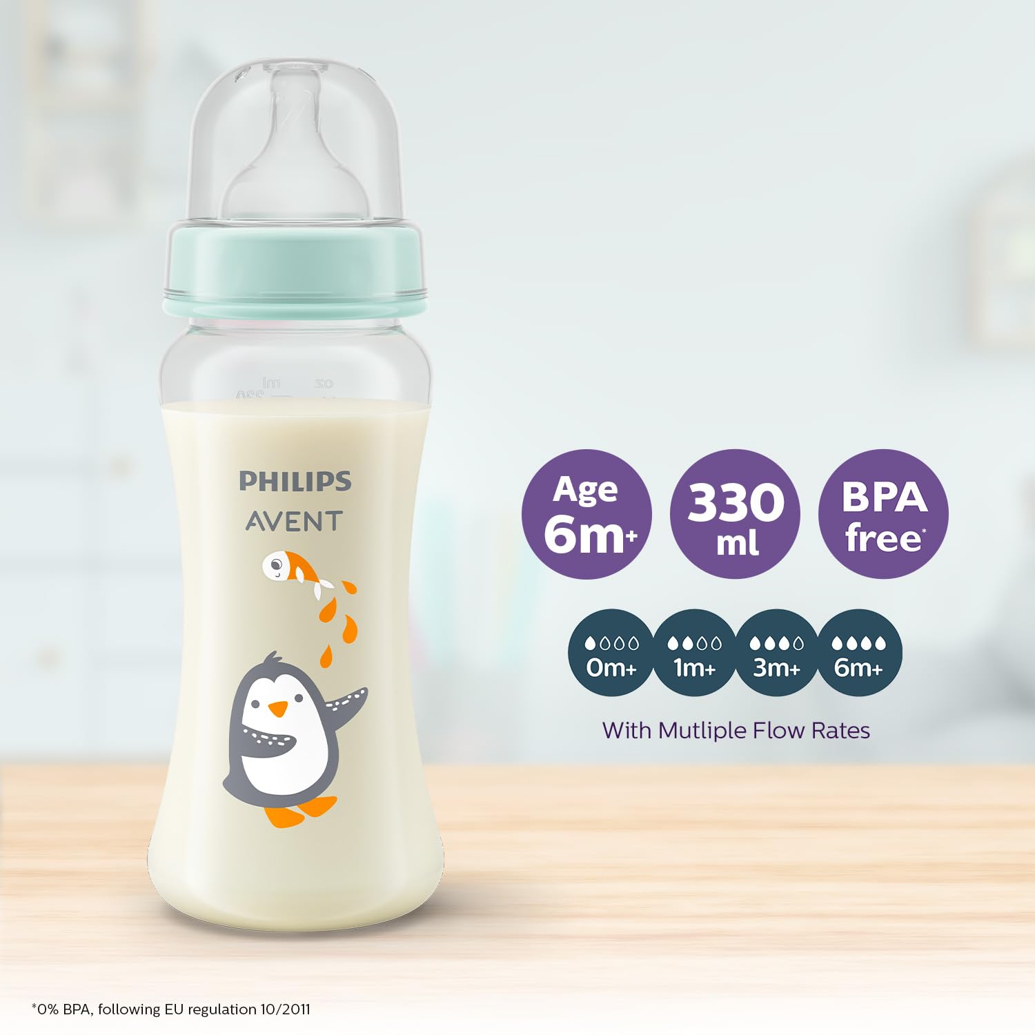 Designed to grow with your baby, the Philips Avent Grow Baby Bottle (330 ml) delivers flexibility and long-term value. With a swappable teat system, this bottle allows parents to adapt flow rates as their baby progresses—no need to change bottles as your little one grows.