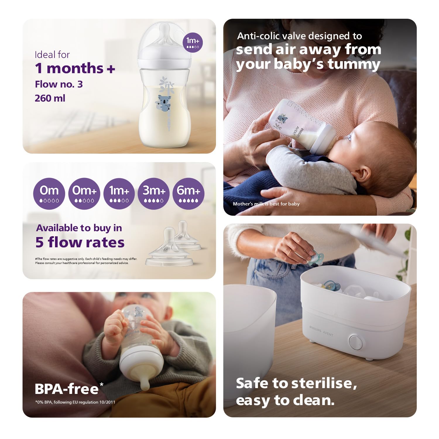 Designed to support your baby’s natural feeding rhythm, the Philips Avent Natural Response Baby Bottle offers a seamless transition between breast and bottle. Its unique teat only releases milk when your baby actively drinks—just like breastfeeding.