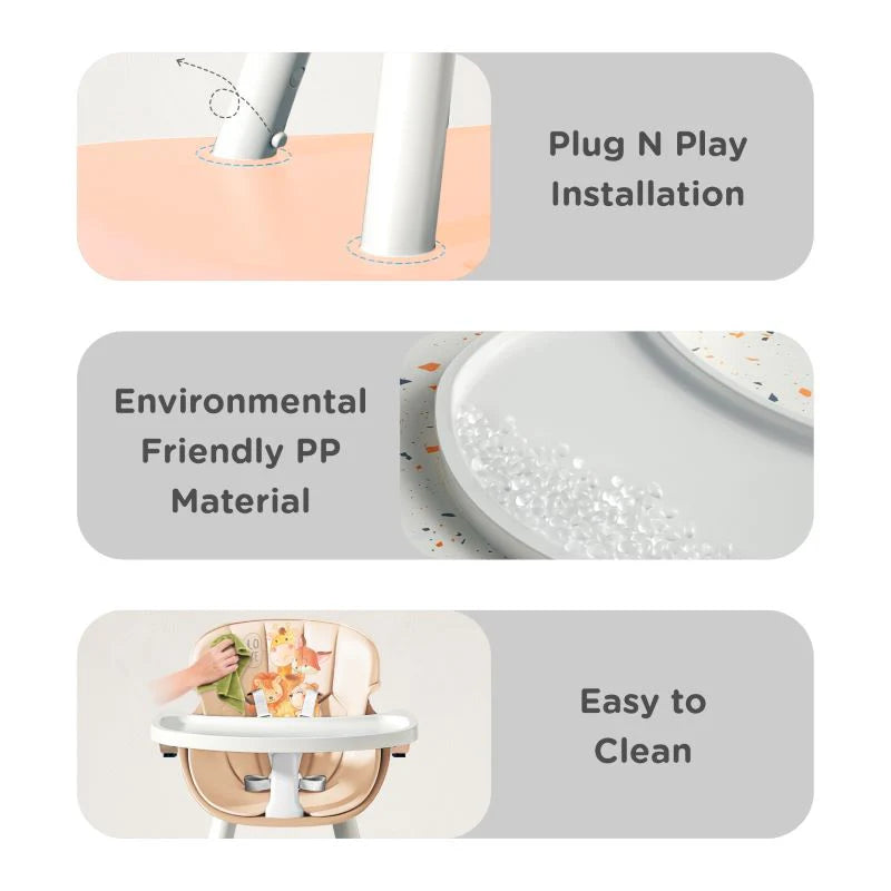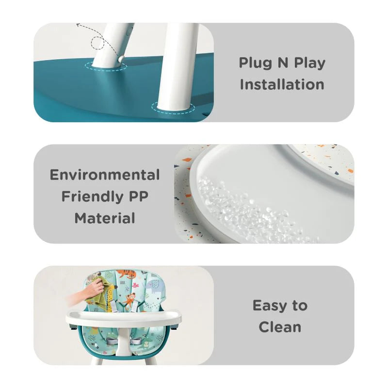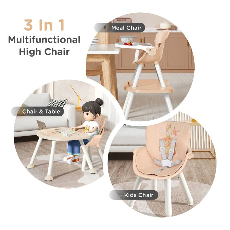 3-in-1 Convertible Design: Functions as a high chair, toddler chair, and study table—ideal for feeding, playtime, and learning.